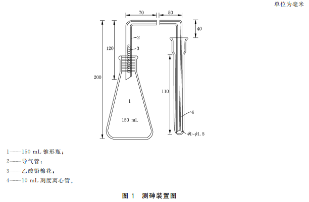 10.4.1砷標準儲備液(100mg/L,按As計):準確稱取于100℃干燥2h的三氧化二砷0.0132g,加100g/L氫氧化鈉溶液1mL和少量水溶解,轉入100mL容量瓶中,加人適量鹽酸調整其酸度近中性,加水稀釋至刻度。4℃避光保存,保存期一年?;蛸徺I經國家認證并授予標準物質證書的標準溶液物質。