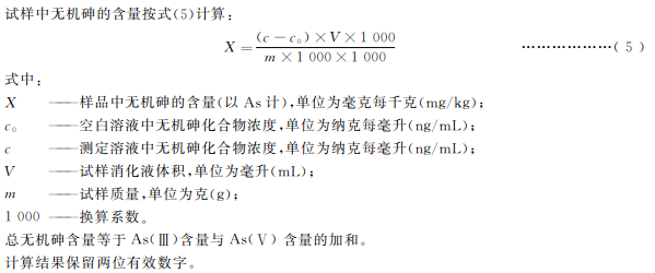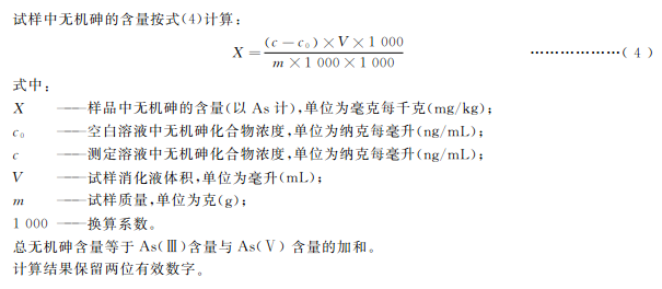 本標準第一篇規定了食品中總砷的測定方法。本標準第二篇規定了食品中無機砷含量測定的液相色譜-原子熒光光譜法、液相色譜-電感耦合等離子體質譜法。