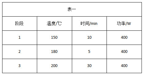 精確稱取切碎后的大蔥樣品 0.1g(精確至 0.1mg),置于消解罐底部,加入 8mL 硝酸,靜置 20min 左右,組裝消解罐,按照如下設置參數進行消解實驗: