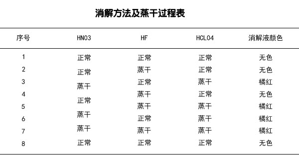 試劑:硝酸(HNO3)、氫氟酸(HF)、高氯酸(HCLO4)、鹽酸(HCL)均為優(yōu)級純。